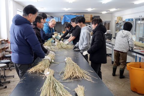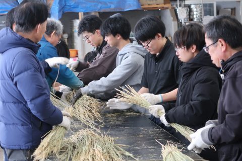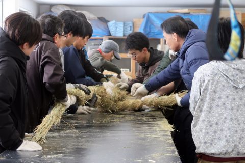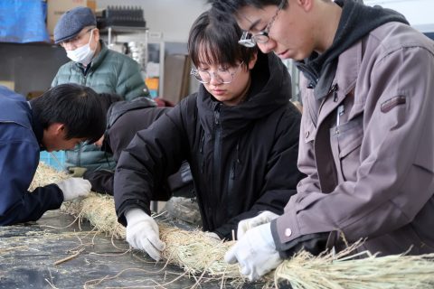稲わらを使った注連縄づくりは、稲作とともに日本各地で受け継がれてきた伝統的な技術であり、農業と暮らし、祈りが深く結びついている文化でもあります。学生たちは、力仕事と繊細な作業の両方を経験しながら、実践を通して「稲わら文化」や日本の伝統行事について理解を深めました。