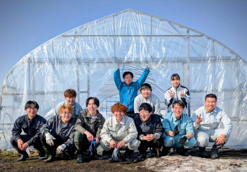 3月24日、農学ビジネス学科の新2年生が中心となり、水稲育苗用大型ハウスおよび野菜・花き用中型ハウスの展張作業を行いました。当日は天候にも恵まれ、作業は順調に進みました。