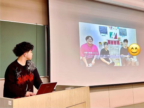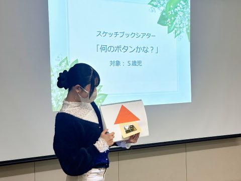 本学では2年生の夏休み期間に、①幼稚園、②保育所または福祉施設、で現場実習をします。今年は実習の内容や学んだこと、今後の学びや実践に向けた課題についてパワーポイントにまとめて発表しました。発表者からは実習を振り返ることにより、実習で体験したこと、施設の先生方、園児さんや利用児者さんから学んだことについて深く考え、今後の課題を見出した様子がうかがえました。部分保育や利用児者さんとのレクリエーションで制作したものを、写真や現物で披露してくれる学生もいて、学生同士のお互いの学びの機会にもなりました。