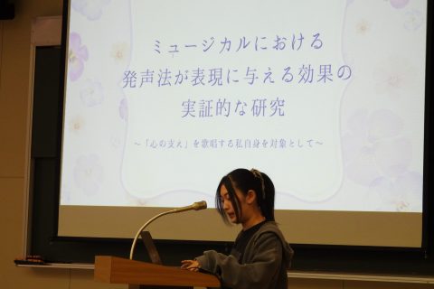 ・個人研究では、ミュージカルにおける発声法に関する研究と、施設職員の通所受給者証の判定及びそのあり方に関する研究が報告されました。