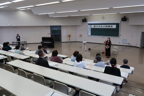 8月30日(土)本学クリスタルホールに於いて、令和7年度深川市民公開講座第3回「イタリア古典歌曲について」が開催され、保育学科の小嶋麻美助教が講師を務めました。