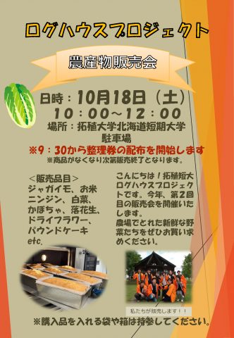 北短ログハウスプロジェクト「秋の農産物販売会」