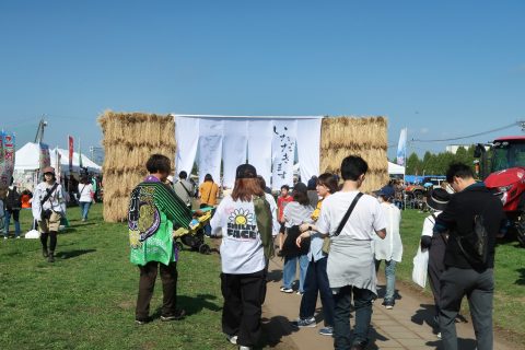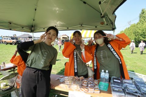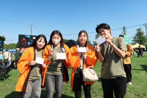 澄み切った青空の下、本学ラグビー場を会場に「農道音楽祭-nouon-」が開催されました。本学学生も17名(1年生7名、2年生10名)がスタンプラリー企画担当スタッフとして参加しました。